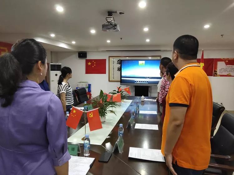 9時(shí)35分,支部大會(huì)在莊嚴(yán)肅穆的中華人民共和國(guó)國(guó)歌聲中正式開(kāi)始。全體人員一起高唱國(guó)歌。